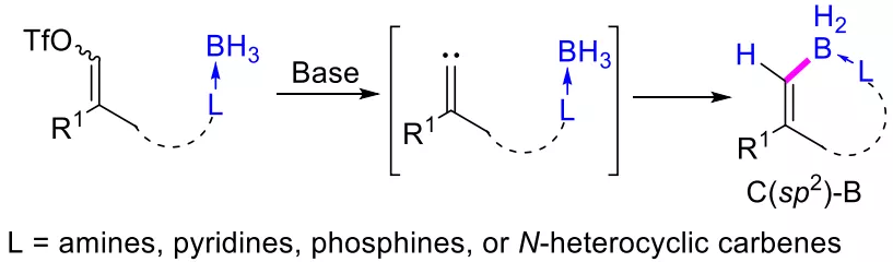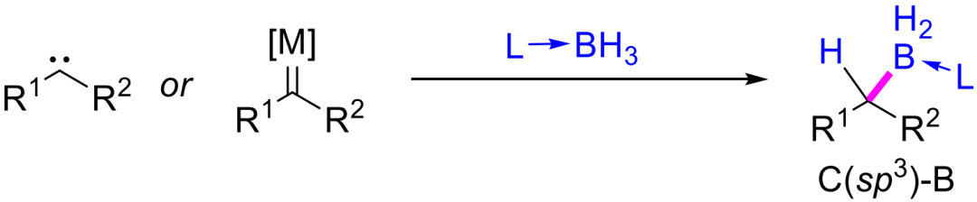 這些方法的優勢在于它們采用的硼烷加合物容易制備而且高度穩定,同時,卡賓的來源廣泛,可以通過簡單的前體較方便地得到。然而迄今為止,只有飽和卡賓被成功應用于B-H鍵的插入反應,最終得到相應的烷基硼化合物。